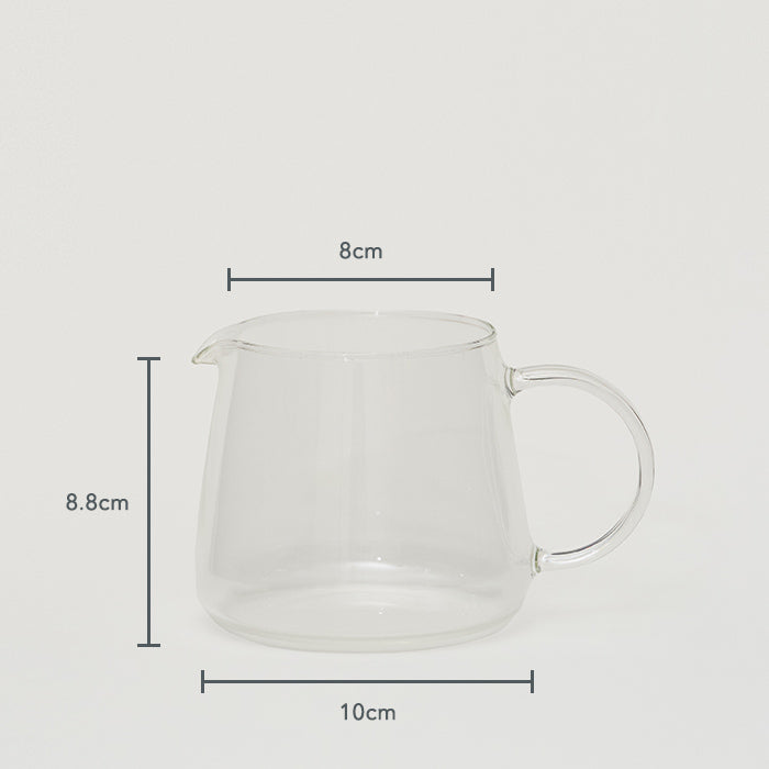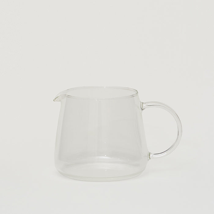 透明なガラスなので水の減り具合が分かりやすく、また取っ手がついているためちょっと置き場所を変えたいときの持ち運びやすさも◎。コロンとしたフォルムがかわいいガラスサーバーです。