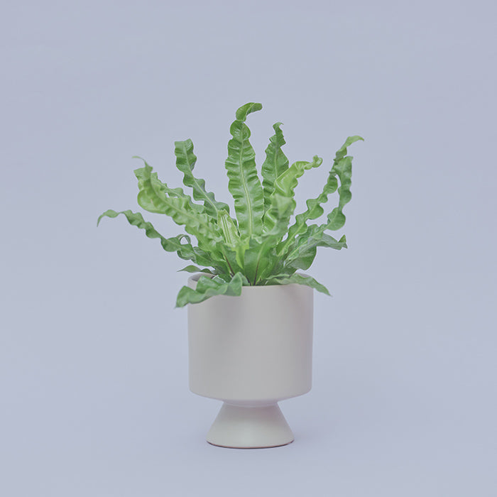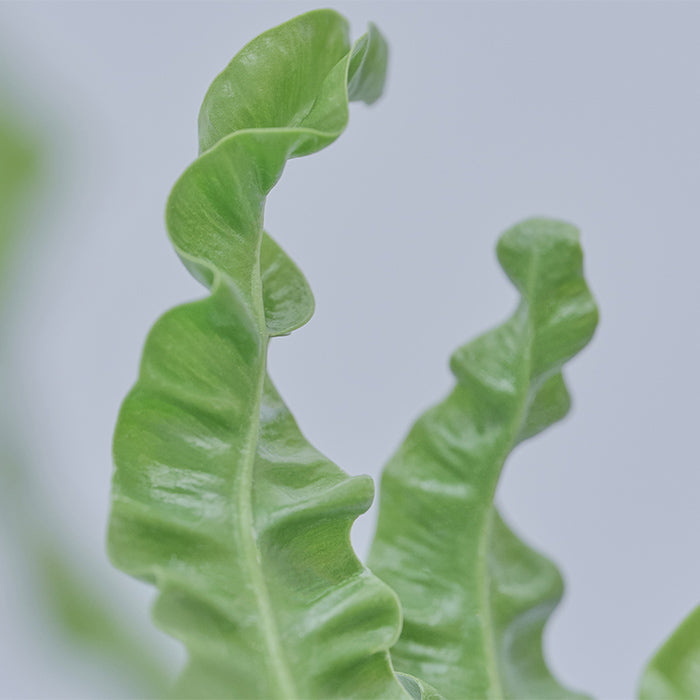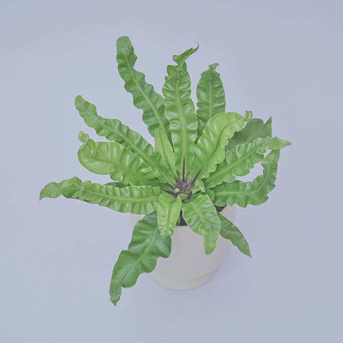フリルのようなウェーブの葉が個性的なアスプレニウム。「小さくて力強い」という意味のハワイ語から連想するとおり、“アカキ”は数あるアスプレニウムの種類の中でも葉が肉厚でウェーブも強い品種です。さらに表面は艶やかで美しく、小さいながら存在感を放ちます。